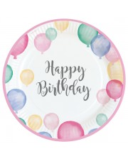 Weiße Pappteller mit bunten Ballons in schönen pastellfarben. Durchmesser ca. 23 cm.
